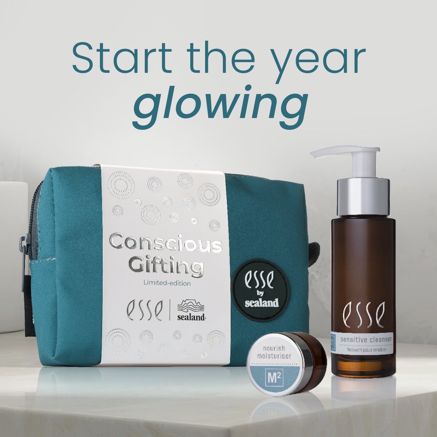 Spend R1000 on ESSE and receive the limited edition ESSE x SEALAND gift set free, valued at R900. Featuring a 50ml Sensitive Cleanser, 10ml Nourish Moisturiser, and a Sealand cosmetic bag made from 100% recycled materials. Thoughtfully made and kind to the planet.